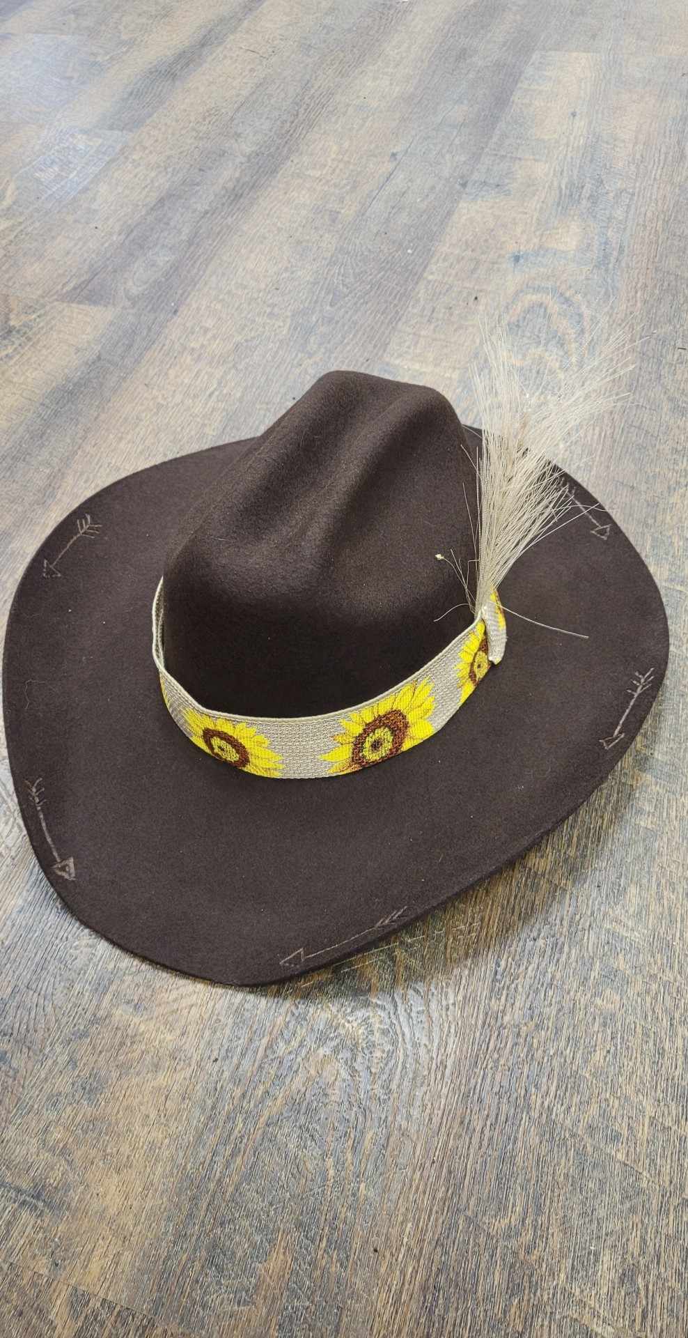 MEDIUM Silverado Hazer with arrows, sunflower band and feather