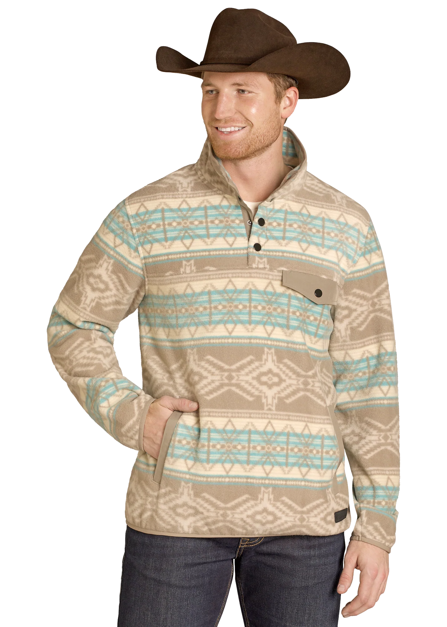 Rock & Roll Gray Aztec Fleece Pullover